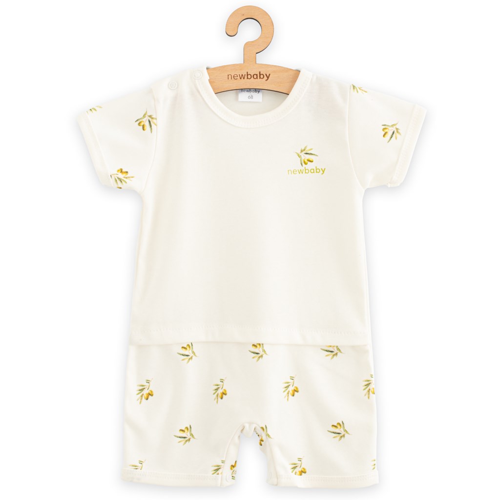 Stílusos New Baby Olives rövid ujjú baba overall. Teljes felületén gyönyörű olives mintával nyomott átlapolós overall. Praktikus, oldalt megkötős, belülről és a lábak között patentokkal, ami megkönnyíti az öltöztetést és a pelenkázást. Puha gumi a nadrágszáron, amely nem nyomja a baba lábát