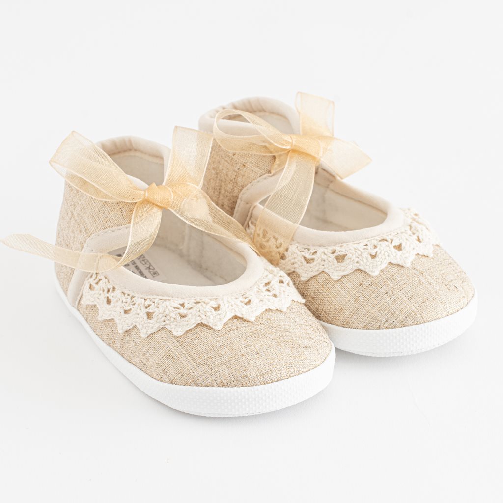 Baba aranyos és kényelmes cipő New Baby kisbabák számára. Divatos megkötős puhatalpú cipő. Belső-100% poliészter, béléssel rendelkezik. A cipő kényelmes, könnyű és a láb természetes mozgásához igazodó. Rugalmas talppal rendelkeznek, így leginkább hasonlítanak a mezítlábas járáshoz, viszont pont annyira vastagok, hogy védjék a baba talpacskáját a hideg padlótól. Összetétel: 100% poliészter. Talp: szintetikus anyag-BPA free. A talpbetét hossza 13 cm. 12-18 hónapos gyermekek számára készült. Praktikus dobozban csomagolva. Megjegyzés: a textilbetét alatt néha van egy papírbetét, amely megtartja a kiscipő alakját. Az első használat előtt távolítsa el ezt a papírbetétet.