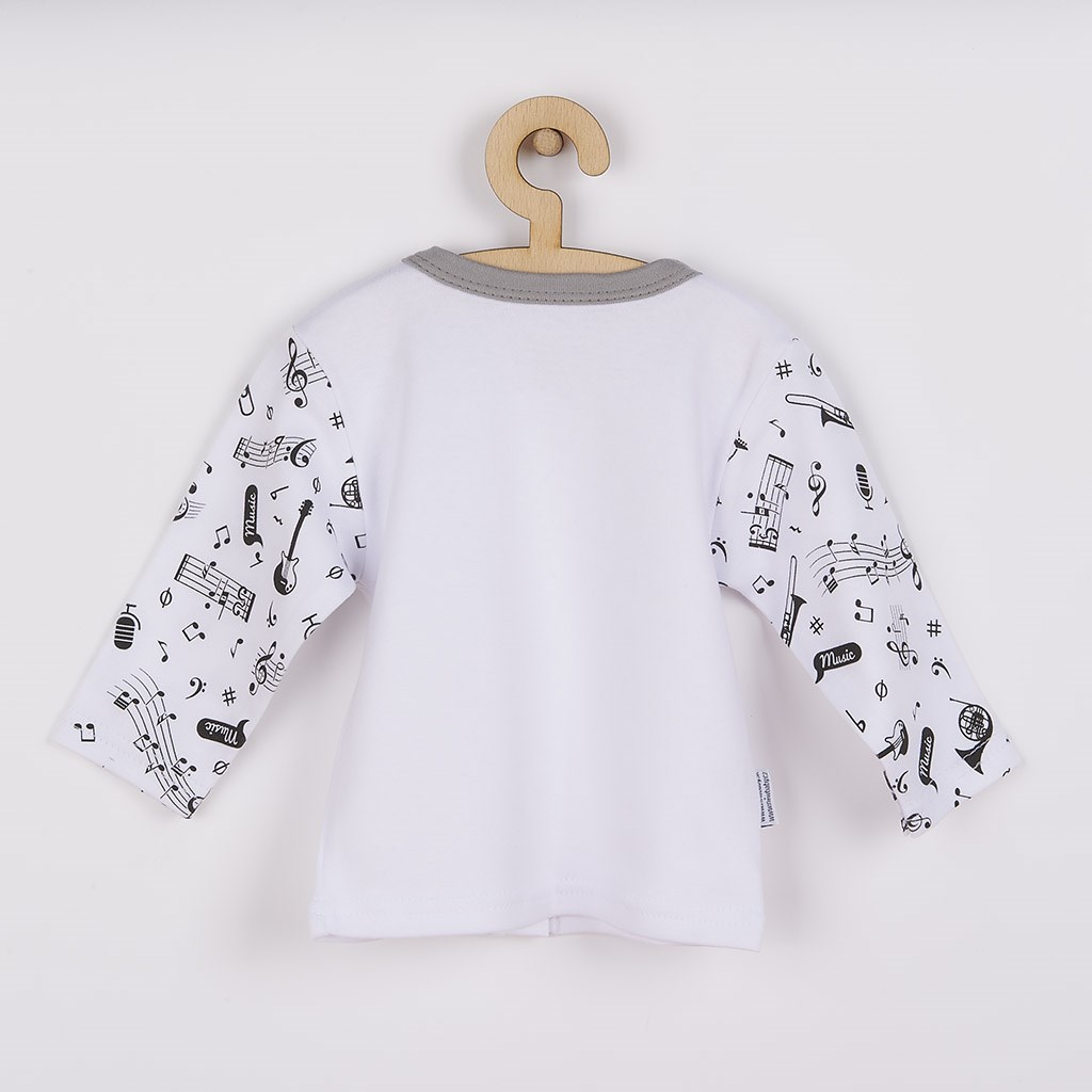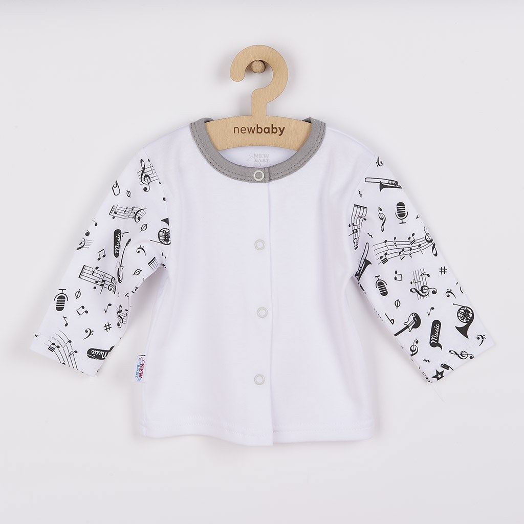 Eredeti, divatos pamut baba kabátka New Baby Music. A kabátka egyszínű az ujjai hangjegyekkel és hangszerekkel díszitve. Teljes hosszában patentos, ami megkönnyíti a baba öltöztetését. Puha minőségi anyagból készült, amibe a baba kényelmesen fogja érezni magát. Lányoknak és fiúknak is alkalmas. Anyaga 100% pamut. Mérete: mellbőség kb 46 cm, ujjhossz kb 22 cm, teljes hossz kb 29 cm.