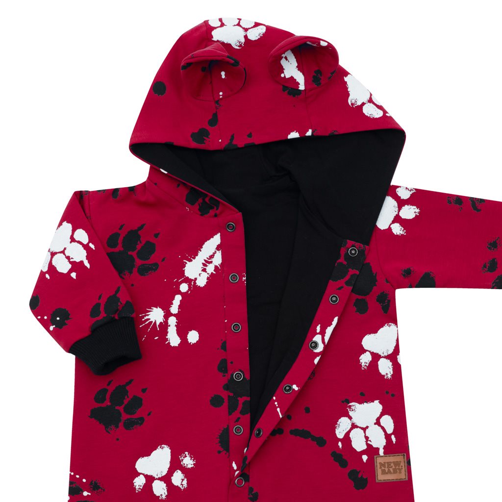 Stílusos és praktikus baba kezeslábas New Baby Paw kisbabáknak. Az overallt gyermekminta díszíti. Kellemes, puha és minőségi anyagból készült, amibe a baba nagyon kényelmesen fogja érezni magát. Teljes hosszában patentos, amely megkönnyíti a baba öltöztetését és pelenkázását. Az overálnak praktikus kapucnija van fülekkel. Szélesebb rugalmas szegéllyel a kezén és a lábán, és a teljes belső rézse pamut béléssel van ellátva, ami növeli a viselési kényelmet. Anyaga: 95% pamut, 5% elasztán, bélés-95% pamut, 5% elasztán. Alkalmas tavasszal és ősszel.