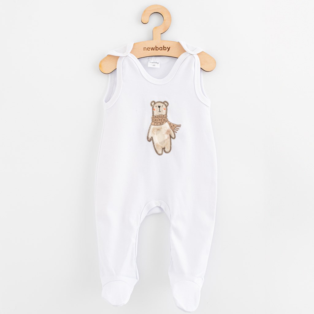 Pamut rugdalózó New Baby Polar Bear kisbabák számára. A rugdalózó aranyos mackó hímzés díszíti. A hímzés karcálló anyaggal van ragasztva. Vállnál és az ülepénél patentos. A kollekció nagyon kellemes, puha és minőségi anyagból készült. A divatos kollekció lányok és fiúk számára alkalmas. Anyaga: 100% pamut.