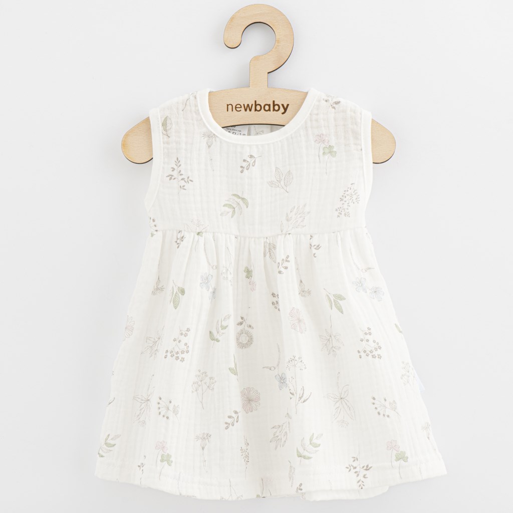 Baba muszlin ruha New Baby Zoe, minden kislány számára. Harang alakú, ujjatlan ruha. Hátulján patentos. Nagyon kellemes és puha anyagból készült. A New Baby számára nagyon fontos a vásárló elégedettsége, ezért kínáljuk Önnek a Zora ruhát. Anyaga: 100% pamut.