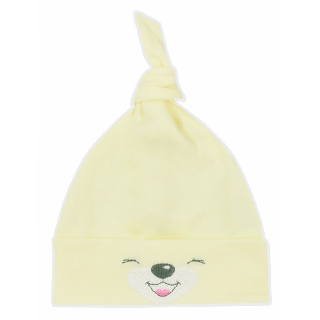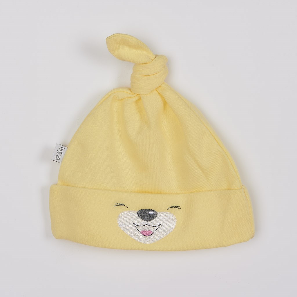Baba pamut sapka Bobas Fashion Lucky. A sapka mosolygós állatka arccal díszitve. Széles szegéllyel rendelkezik. A sapka minőségi pamutból készült, ami kellemes, puha és ezért nagyon alkalmas a csecsemőknek. Anyaga: 100% pamut.