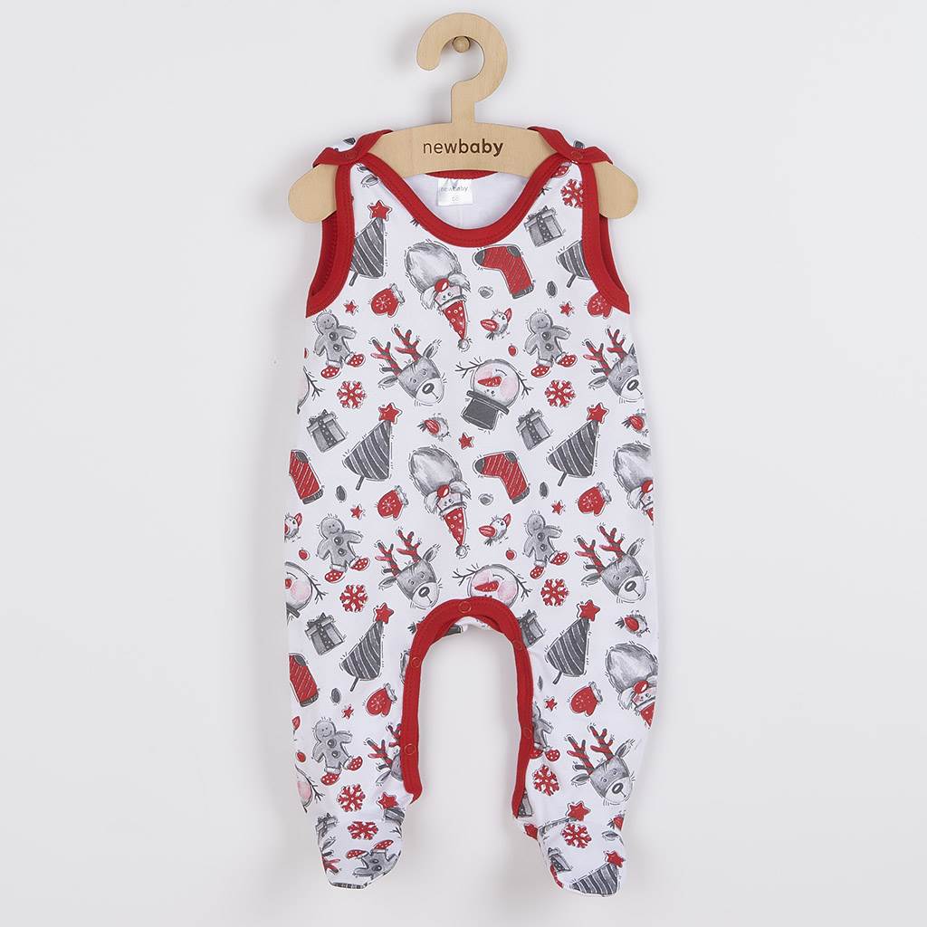 Aranyos pamut rugdalózó New Baby Christmas kisbabák számára. A rugdalózót aranyos karácsonyi motívum díszíti. Vállnál és az ülepénél patentos, ami megkönnyíti a baba öltöztetését és pelenkázását. A kollekció nagyon kellemes, puha és minőségi anyagból készült, amibe a baba nagyon kényelmesen fogja érezni magát. A divatos kollekció lányok és fiúk számára alkalmas. Anyaga: 100% pamut.