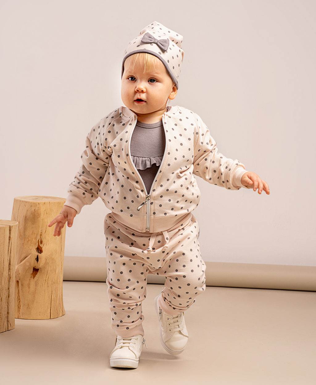 Gyönyörű pamut szabadidő nadrág Nicol Sara babáknak. Az ejtett ülepű melegítő nadrág mintás. Összehúzó színes széles szegéllyel a derekán. Az Sara egy új, meseszép kollekció, amit a kisbabák igényeit figyelembe véve terveztek. Anyaga: 95% pamut, 5% elasztán.