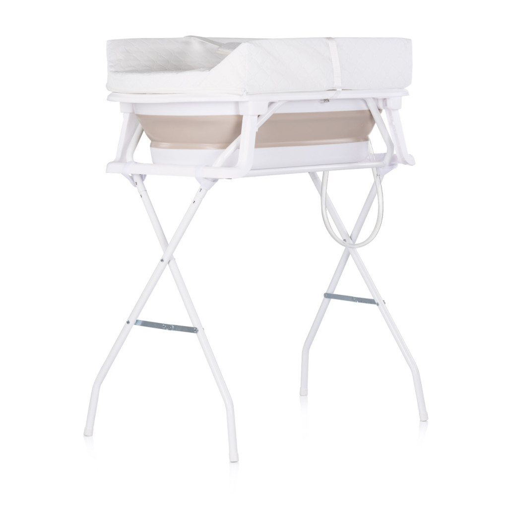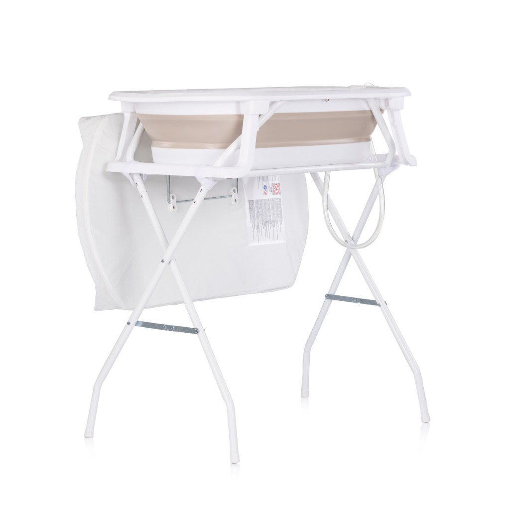 - A masszív fém állvány kényelmes magasságban tartja a kádat, csökkentve a szülők hátára nehezedő terhelést