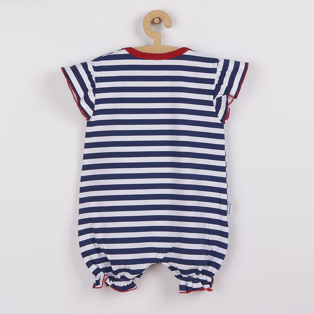 Baba nyári pamut rövid ujjú kezeslábas New Baby Marine. A csíkos overall aranyos fodros ujjakkal és horgony rátéttel rendelkezik. A rátét béléssel van takarva. Vállnál és az ülepénél patentos. Nagyon kellemes és puha anyagból készült. A New Baby számára nagyon fontos a vásárló elégedettsége, ezért kínáljuk Önnek a New Baby Marine kollekciót. Anyaga: 100% pamut.