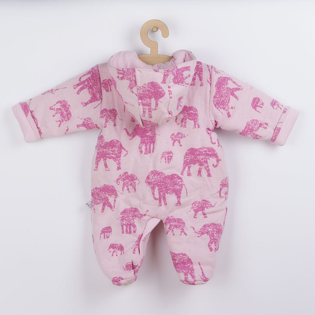 Baba téli kezeslábas kapucnival Baby Service Elefánt kisbabák számára. Az overal érdekes elefántos mintával díszítve, pamut anyaggal bélelve és allergiaellenes szállal töltve. Teljes hosszában és az ülepénél patentos. A kollekció nagyon kellemes, puha és minőségi anyagból készült. Anyag: 65% pamut, 35% poliészter, bélés: 100% poliészter, tőltet allergiaellenes szál.