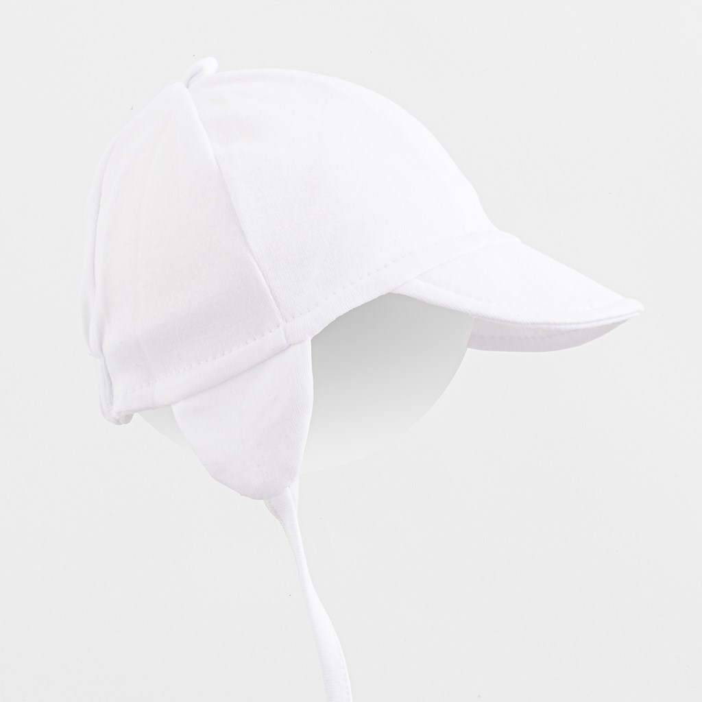 Nyári muszlin sapka New Baby. A sapka védi a fejét a tűző napsugárzástól, és a szélvédőnek köszönhetően árnyékot vet, megakadályozva, hogy az arcát égje a napfény, és megvédi a gyermek szemét a napfénytől. Nyak alatt fűzővel kötés. A muszlin finomszövésű pamut anyag. A muszlin általában szoros szövésű fehérítetlen vagy fehér anyag, amelyet pamut gyöngyfonálból készítenek. Gyakran használják ruhák vagy függönyök készítésére. A muszlin jól levegőzik, ezért jó ruhaalapanyag a száraz, meleg éghajlatú területeken. Összetétel: 100% pamut.