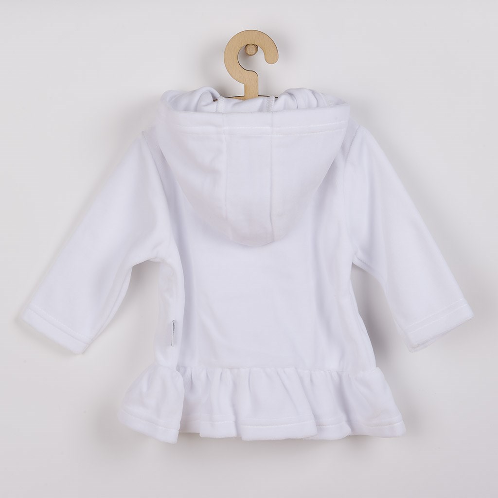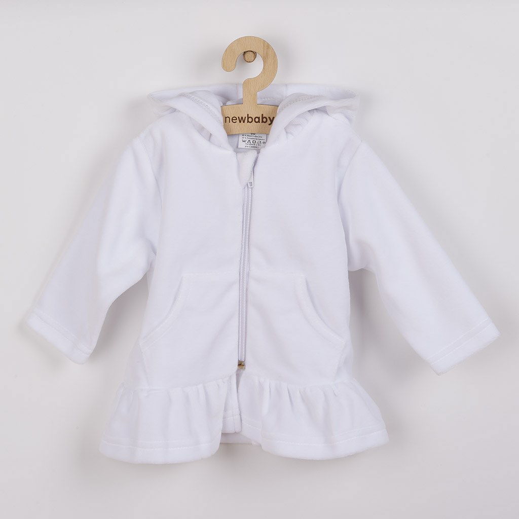 Baba plüss kapucnis pulóver New Baby Baby. A pulóver alja fodros, teljes hosszában cipzáros. A pulóver hosszabb, így tökéletesen helyettesíti a vékonyabb kabátot vagy pulóvert. Nagyon kellemes és puha anyagból készült. A New Baby számára nagyon fontos a vásárló elégedettsége, ezért kínáljuk Önnek a New Baby pulóvert. Anyaga: 80% pamut, 20% poliészter.