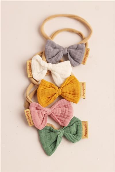 Puha muszlinból készült fejpánt csecsemőknek és gyermekeknek New Baby. Ideális a meleg napokra. A részletekre való odafigyeléssel készült, hogy imádnivaló legyen a babánk. A fejpánt tökéletesen illeszkedik a többi muszlin termékünkhöz, hogy egy gyönyörű készletet alkosson, amelyet babaköszöntő ajándékként adhatsz.