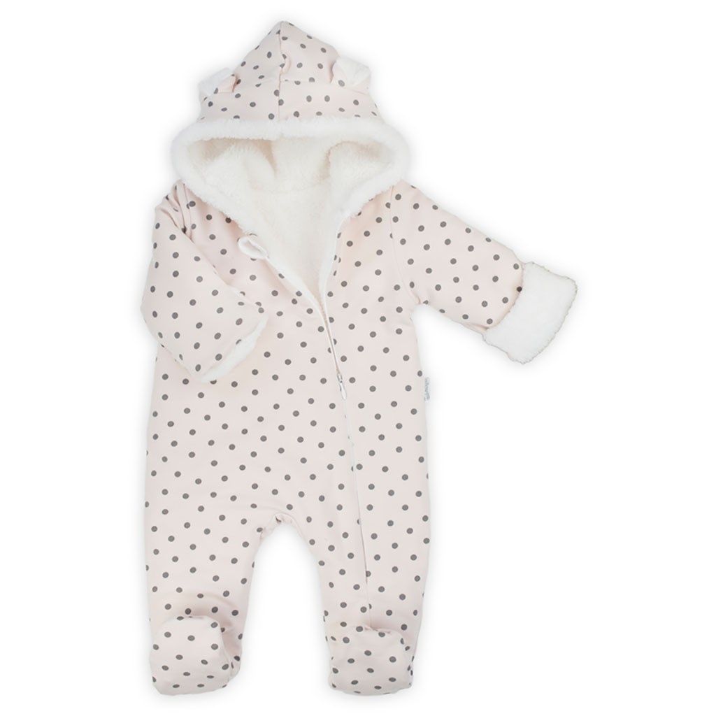 Baba téli kapucnis kezeslábas Nicol Sara kisbabák számára. Az overal minőségi anyagból készül, amely garantálja a babának a meleget és kényelmet. Nagyon puha, kellemes tapintású , Wellsof anyaggal bélelt. Az ujjak felhajthatók, aminek köszönhetően láthatóvá válik a meleg bélés. A kezeslábas teljes hosszában az oldalán cipzáros. Anyaga: felső anyag: 95% pamut, 5% elasztán, bélés: 90% poliészter, 10% pamut-welsoft.